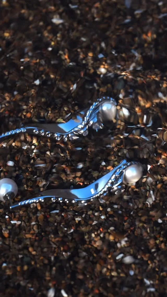 Elegant, flowing curves inspired by octopus tentacles, delicately set with sparkling diamonds like bioluminescent sea creatures. The pearl accents at the tips capture and reflect light, adding a touch of luminous beauty.